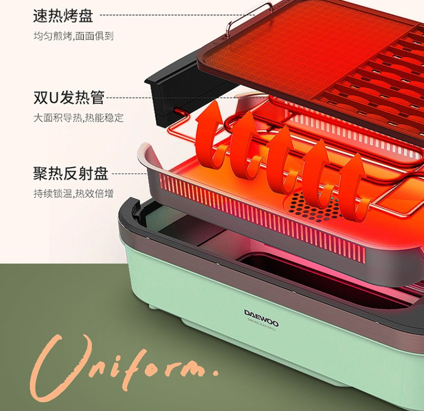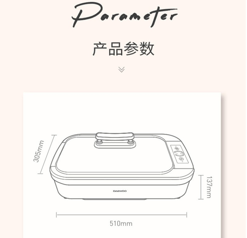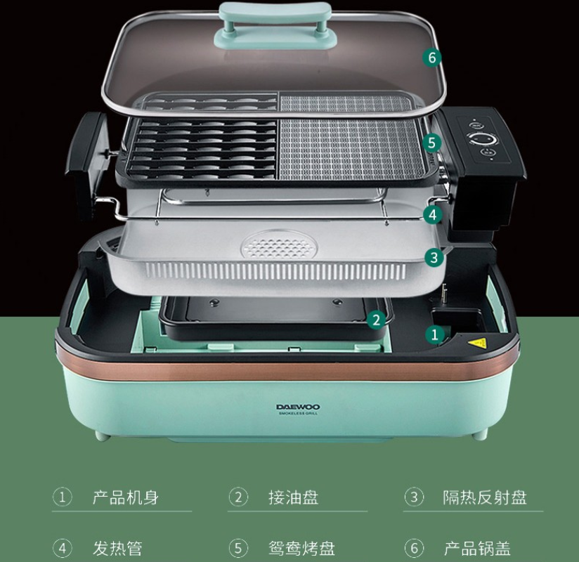 品牌: 大宇(DAEWOO) 商品名稱:大宇(DAEWOO)SK1 商品毛重:6.5kg 貨號:SK1 層數:單層 清洗方式:可拆卸 適用人數:3-5人 類型:傳統烤盤式 適用場景:室內